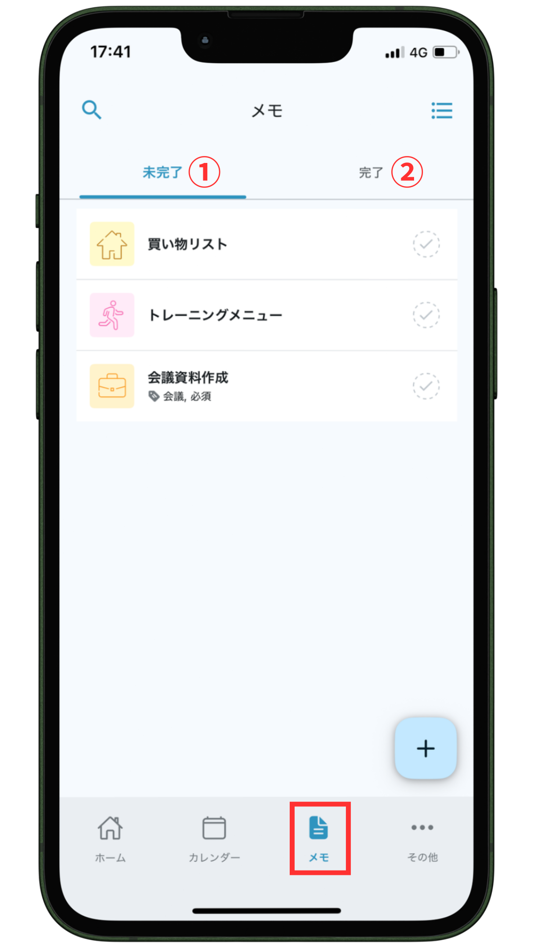 ToDoやメモのステータスを「完了」に変更します。