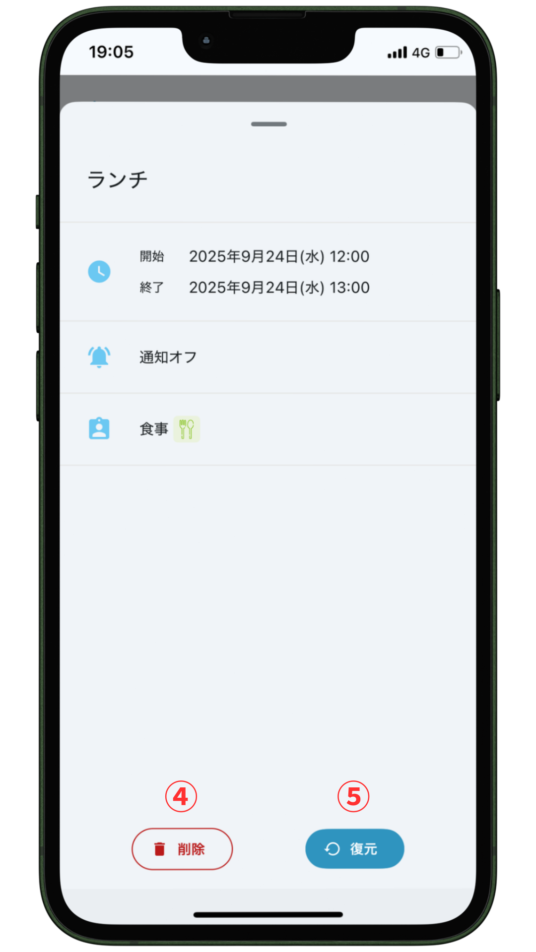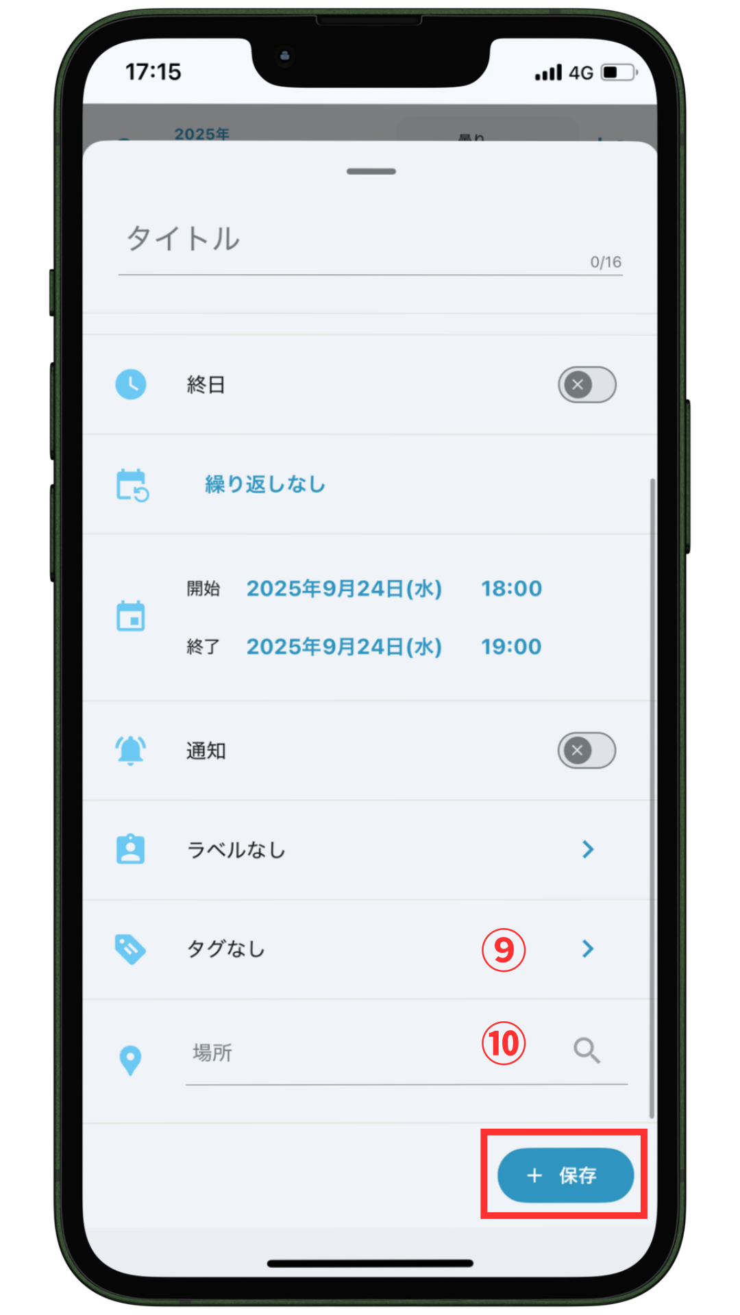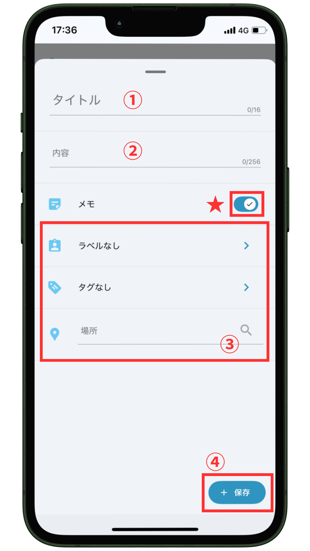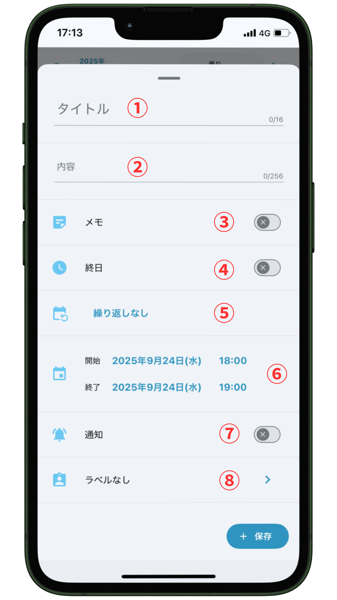 入力が完了したら、④「保存」をタップして登録完了です。