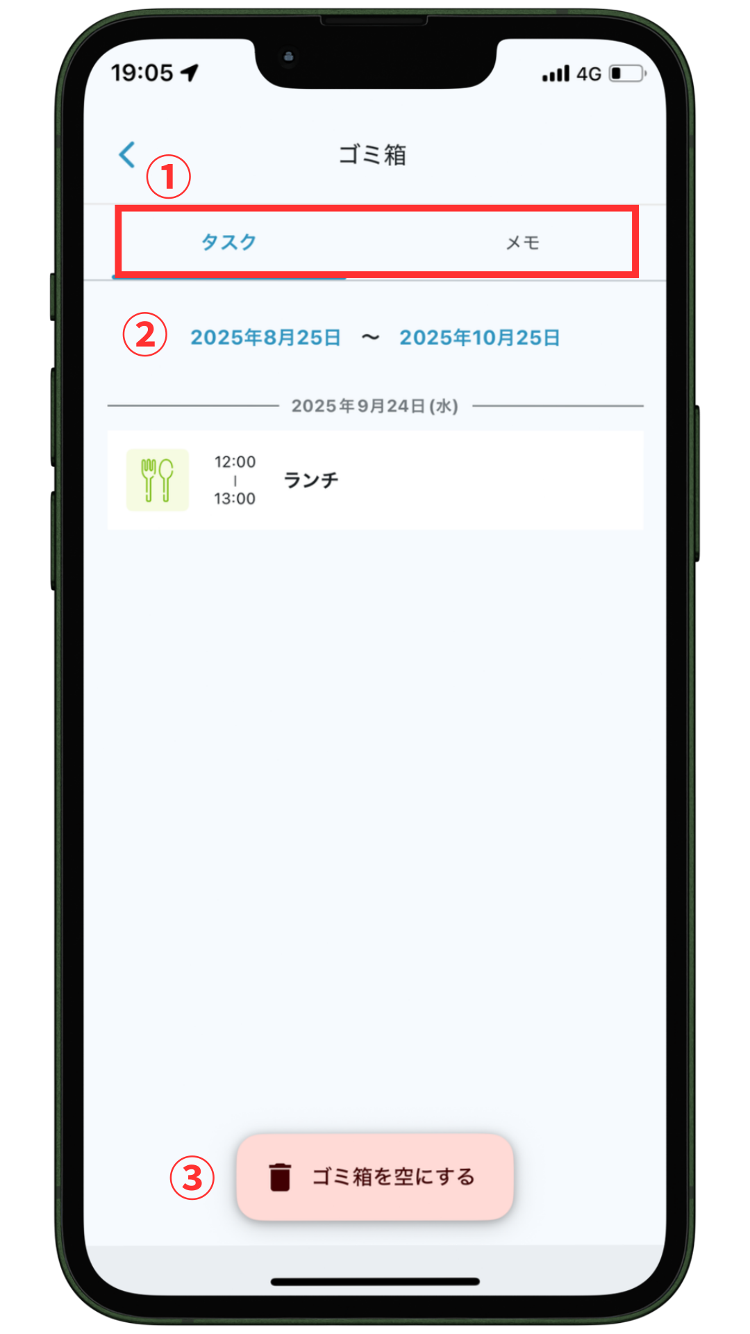 ゴミ箱に入っているToDoやメモを全て削除できます。