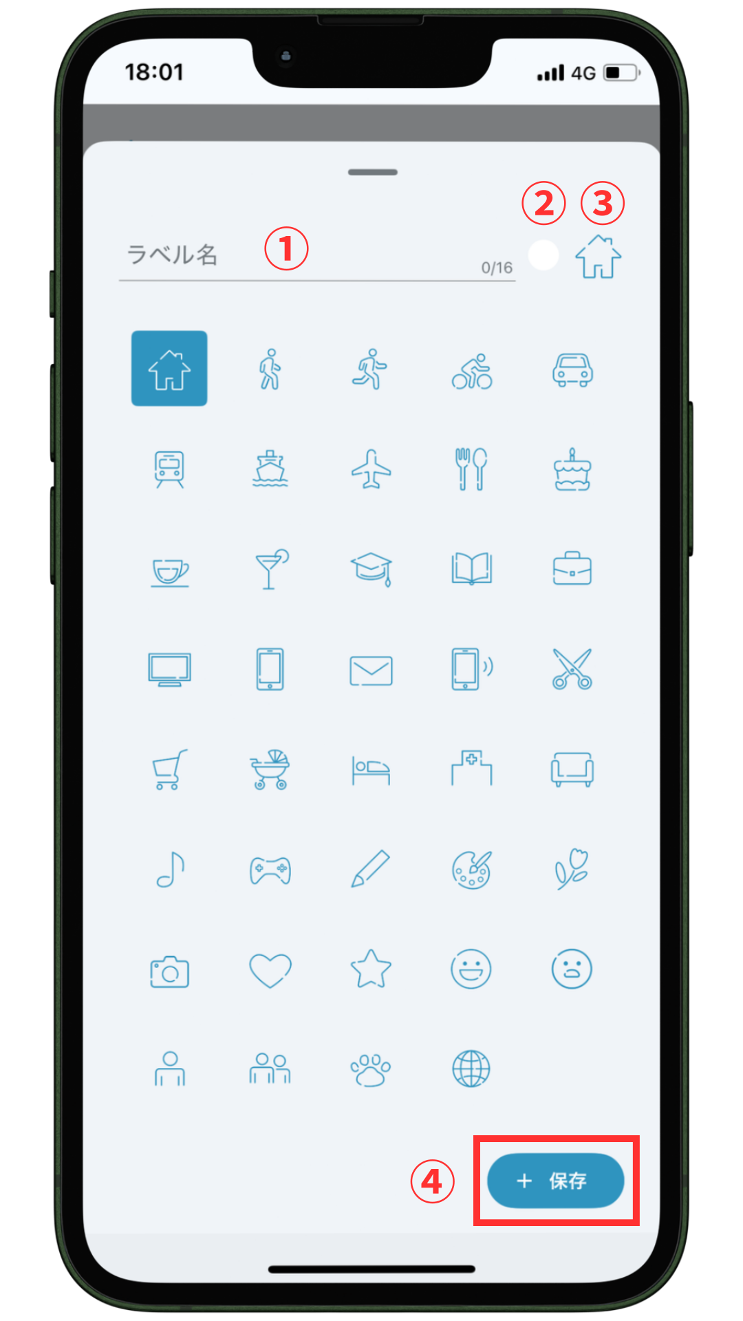 ④「保存」をタップして