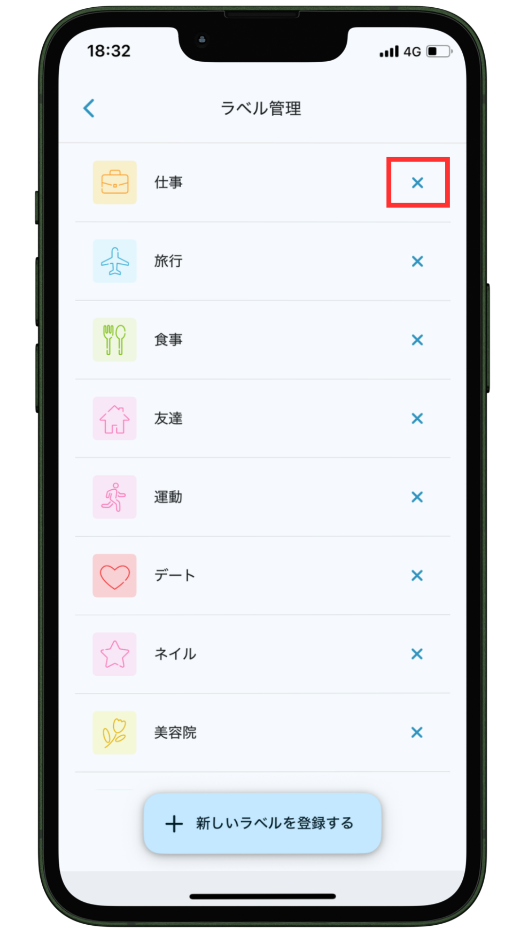 画面下部の「新しいラベルを登録する」をタップすると、ラベルを新規作成することができます。