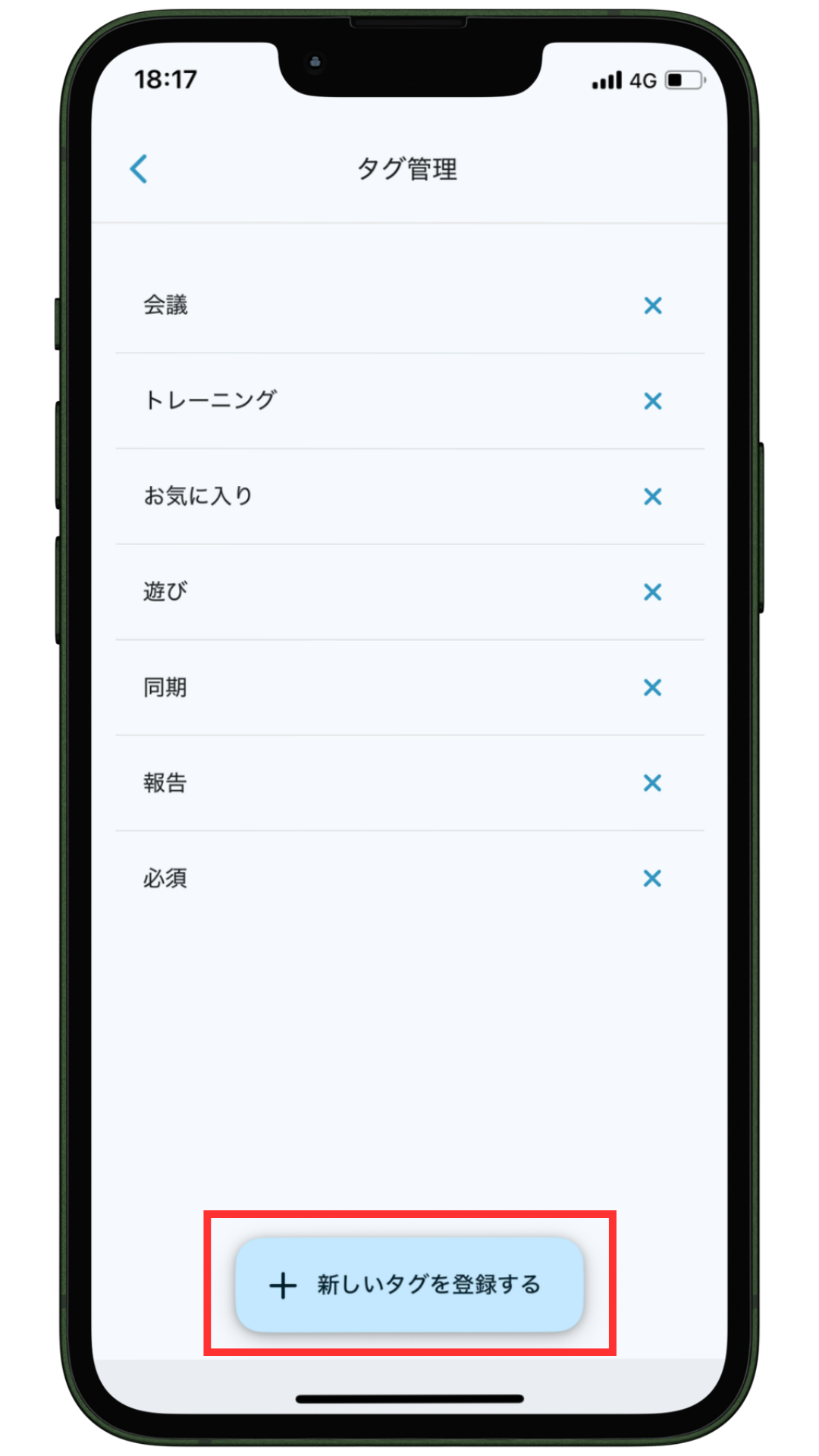 右下の「新しいタグを登録する」をタップすると、タグを新規作成することができます。