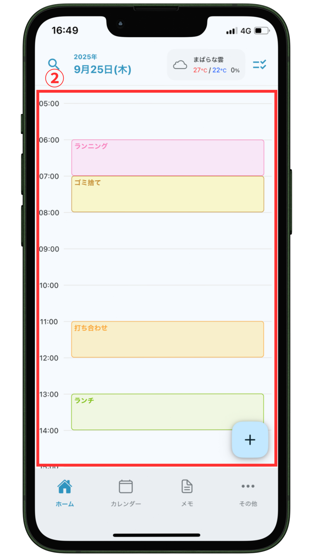 その日のToDoが一日の流れが分かりやすいスケジュール画面で表示されます。